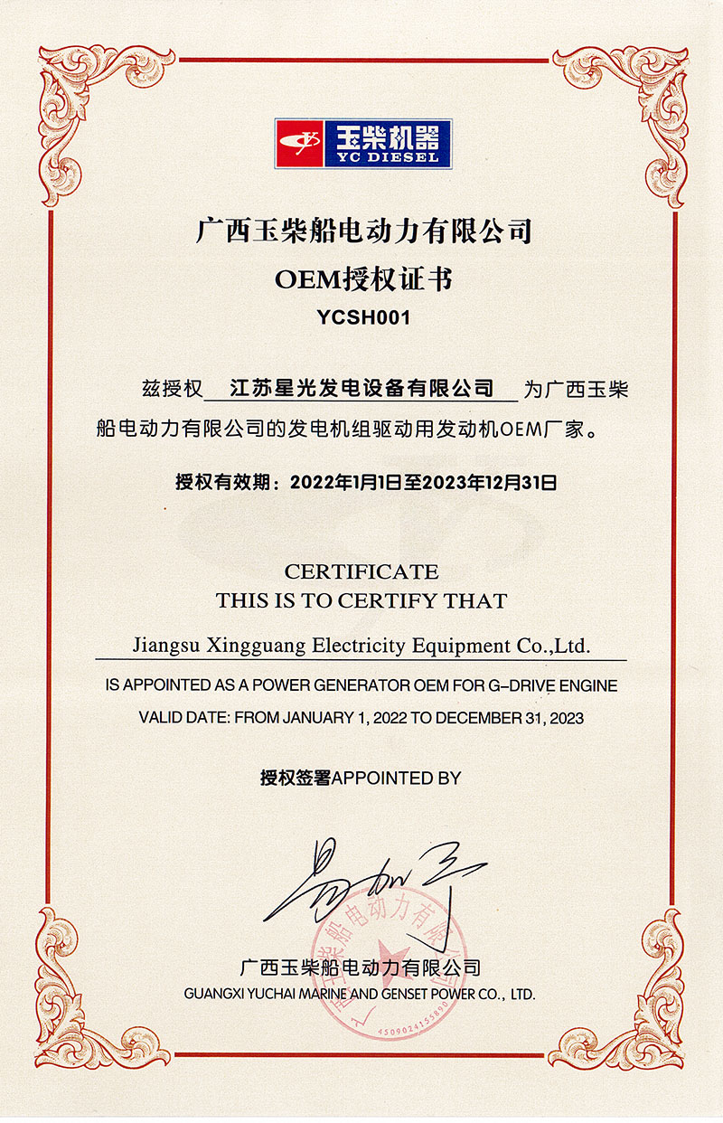 上海孚創(chuàng)動(dòng)力電氣有限公司OEM授權(quán)證書