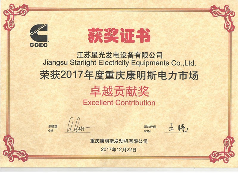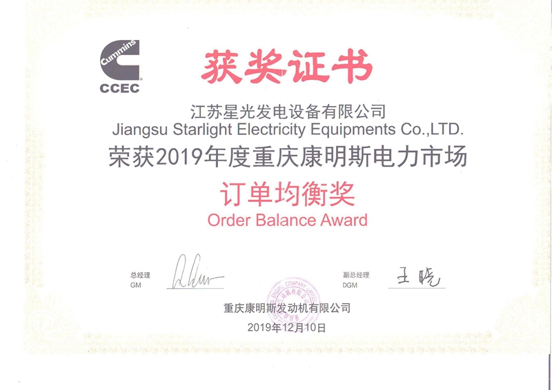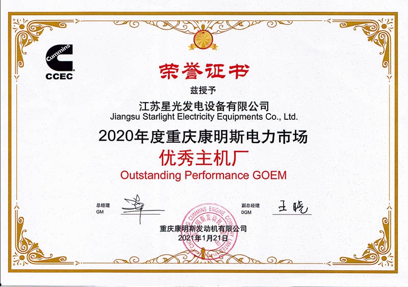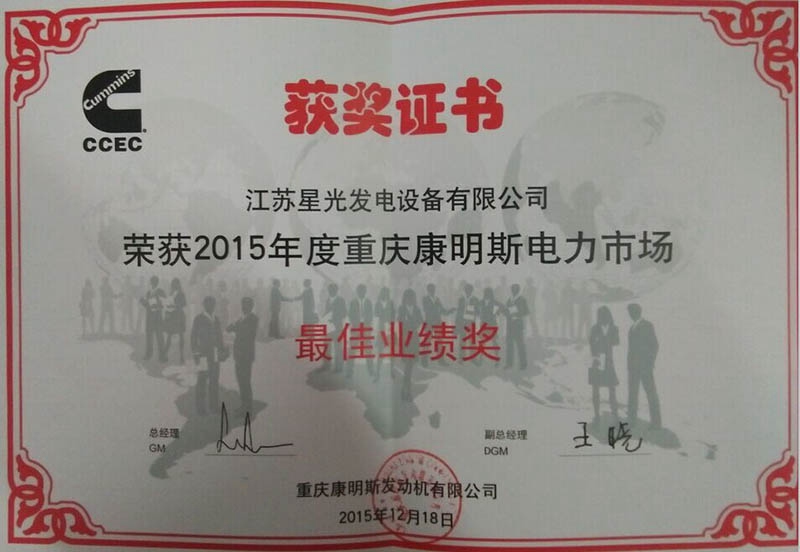 康明斯電力市場優(yōu)秀主機(jī)廠獎