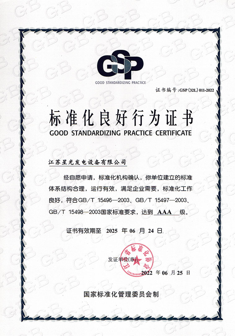 2022年AAA級標(biāo)準(zhǔn)化良好行為企業(yè)證書